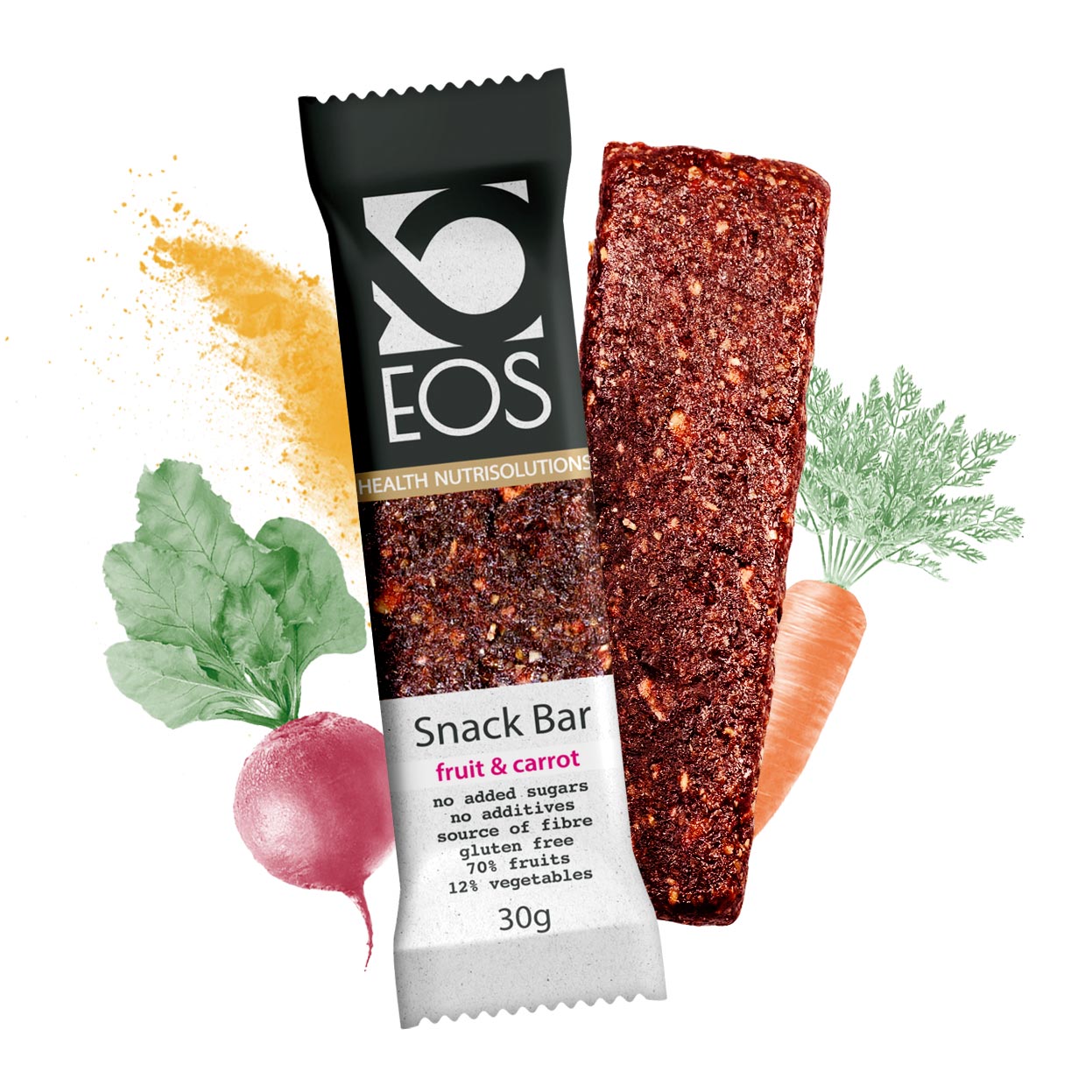 INGREDIENTS: date paste (dates, corn oil), apricot (apricot, preservative: sulfur) (68.8%), oat bran (gluten-free) (13.6%), carrot powder (11.3%), concentrated blackcurrant juice, concentrated beetroot juice [ beetroot juice concentrate, maltodextrin, acidity regulator: citric acid] (1.1%), sunflower oil, superfoods [acerola cherry extract (0.6%), turmeric root dry extract (0.04%)]. The product may contain residues of eggs, nuts, soya, milk, sulphites or sesame seeds.